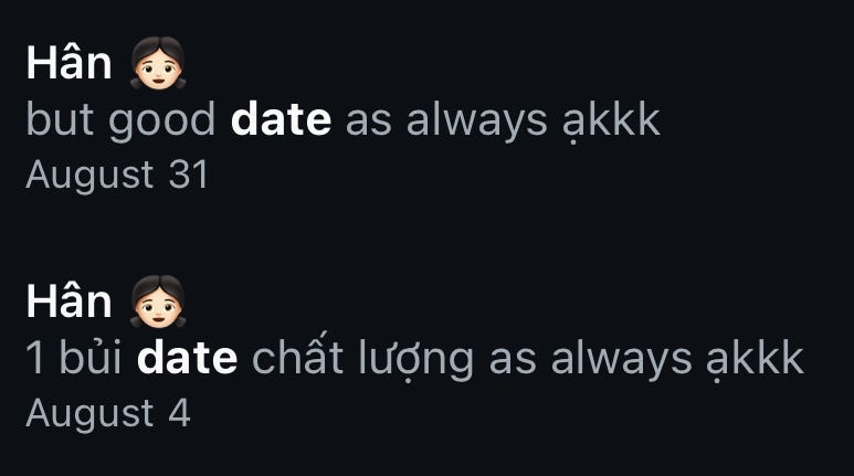 Bạn nhắn tin làm quen trên ứng dụng hẹn hò bằng 1 câu joke. Và người ta không ngần ngại joke lại với bạn.